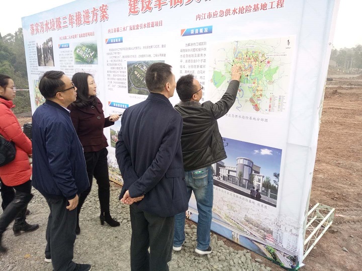 11月28日,省環(huán)境保護(hù)廳副巡視員姚東升一行到內(nèi)江,對(duì)落實(shí)污水垃圾三年推進(jìn)方案落實(shí)情況進(jìn)行調(diào)研。調(diào)研組先后來(lái)到了桐梓壩大橋至壽溪河口綜合環(huán)境整治工程、謝家河黑臭水體整治、東興區(qū)垃圾壓縮站及環(huán)衛(wèi)車輛專用停車場(chǎng),最后來(lái)到我司第二污水處理廠建設(shè)施工現(xiàn)場(chǎng)進(jìn)行實(shí)地調(diào)研。公司黨委副書(shū)記、紀(jì)委書(shū)記、工會(huì)主席李濤在《落實(shí)污水垃圾三年推進(jìn)方案,建設(shè)幸福美麗內(nèi)江》展板前對(duì)項(xiàng)目推進(jìn)情況作了詳細(xì)匯報(bào),并報(bào)告了下一步工作計(jì)劃。