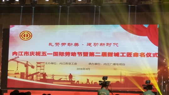 2018年4月26日下午,由市總工會(huì)舉辦的“禮贊勞動(dòng)美·建功新時(shí)代”內(nèi)江市慶祝五一國際勞動(dòng)節(jié)暨第二屆“甜城工匠”命名儀式在錦江國際酒店隆重舉行,市委、市政府主要領(lǐng)導(dǎo)參加了本次活動(dòng)。